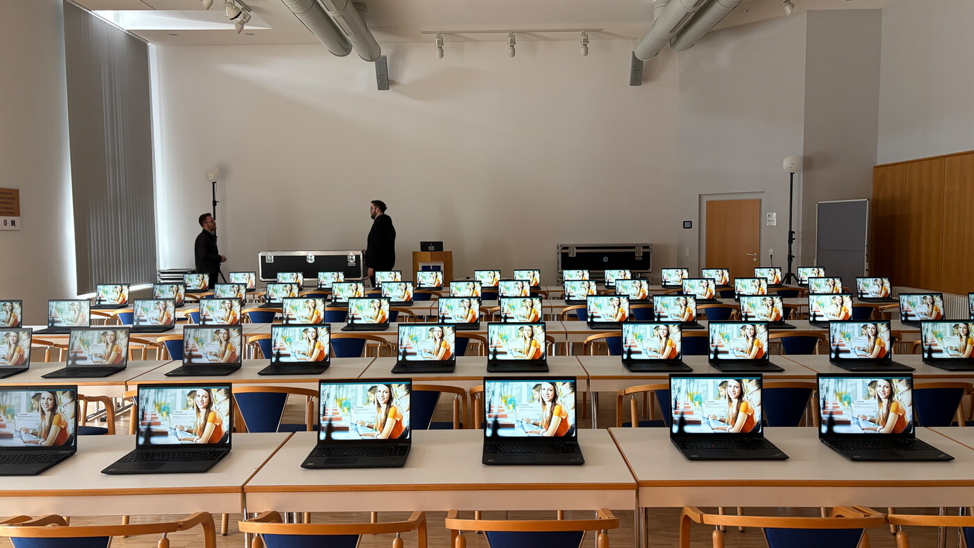 Ergänzend zu den Vorträgen hatten die Teilnehmenden die Möglichkeit, digitale Prüfungen direkt selbst zu erleben. In einem eigens für die Veranstaltung vorbereiteten Prüfungsraum wurde eine Testprüfung als Full-Service-Prüfung simuliert. Die Durchführung wurde vor Ort von unseren Kollegen Oliver Pearson und Robin Krumm in der Rolle der Prüfungsleiter begleitet. So konnten Abläufe, Systemumgebung und organisatorische Aspekte praxisnah nachvollzogen werden.